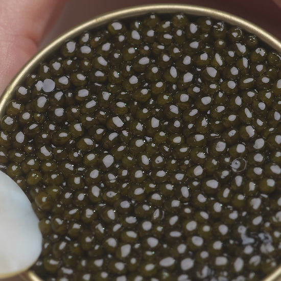 El Oscietra es famoso por su textura rica y aterciopelada y su profundo sabor umami. Cada perla ofrece una suavidad delicada que se despliega en un refinado final de avellana tostada. Equilibrado, elegante y complejo, representa la expresión clásica del caviar de esturión tradicional.